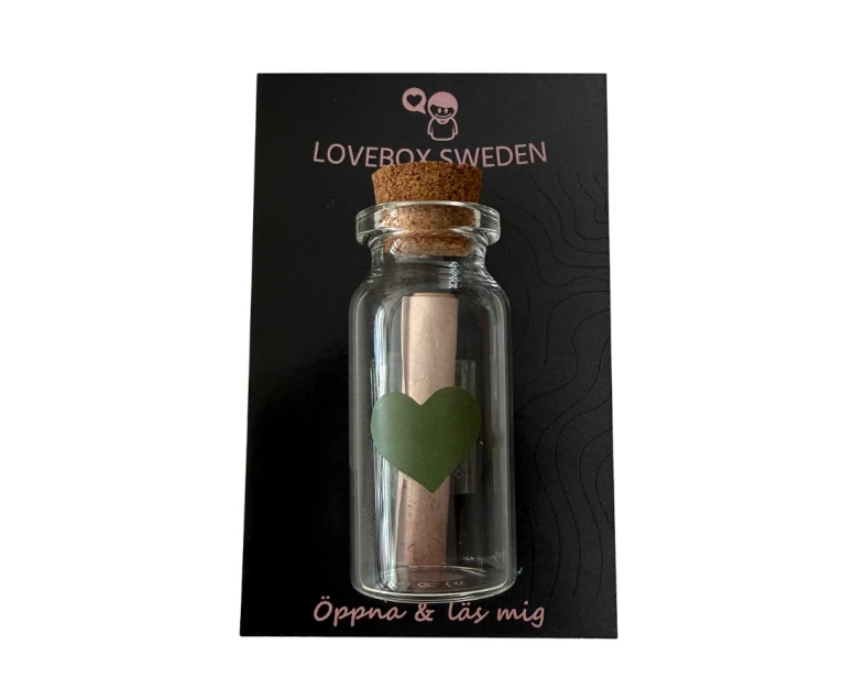 Gör din gåva ännu mer personlig genom våra tillval. Du kan välja att skicka med ett dolt meddelande i en charmig liten glasflaska med kork, eller uppgradera hela upplevelsen till en lyxig presentlåda med magnetlock som blir ett fint minne att spara.