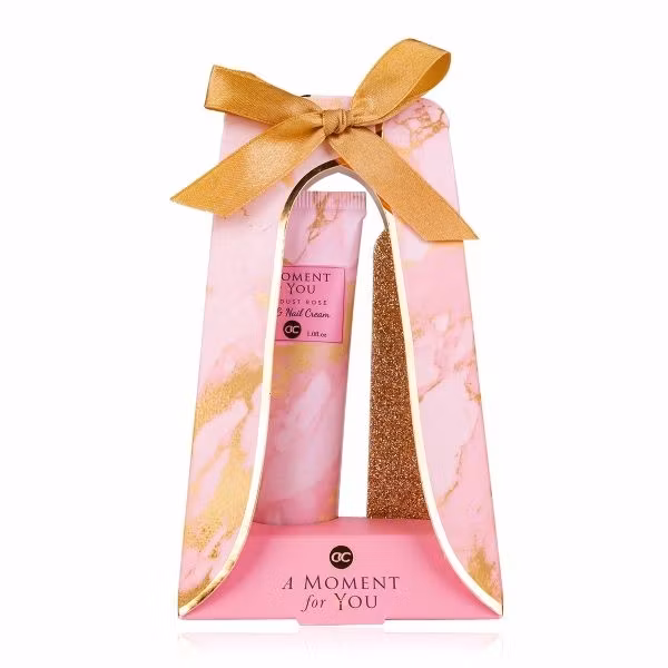 Ge bort en stunds avkoppling och vardagslyx med detta vackra handvårdsset. A Moment for You är skapat för att ge händerna den omsorg de förtjänar, förpackat i en elegant design med rosa marmormönster och guldiga detaljer. Det är en gåva som kombinerar nytta med en exklusiv känsla.